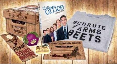 Limited edition gift set includes The Office: Season Five DVD, a mouse pad, a magnet, a beets t-shirt, door hanger, and a stress beet!